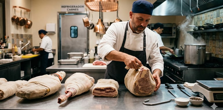 La tela cubre hueso (también conocida como malla protectora o bone guard) es un insumo crítico en la industria cárnica, diseñado específicamente para garantizar la integridad del empaque al vacío y la frescura del producto.